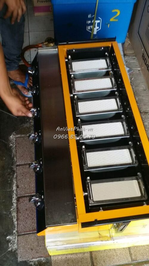 Bếp nướng cánh gà là dòng bếp công nghiệp được An Việt Phát sản xuất tại xưởng. Bếp được thiết kế gọn để có thể đặt ở nhiêu không gian bếp khác nhau. Bếp nướng được làm bằng inox, có mặt gốm đốt giúp cho thực phẩm nướng trên bếp luôn đảm bảo nhiệt độ vừa đủ chín, không gây cháy khét đồ ăn. Bếp nướng chân cánh gà do An Việt Phát sản xuất còn được thiết kế thêm van ngắt gas an toàn và hệ thống đánh lửa tự động. Giúp cho người dùng luôn được an toàn khi sử dụng.