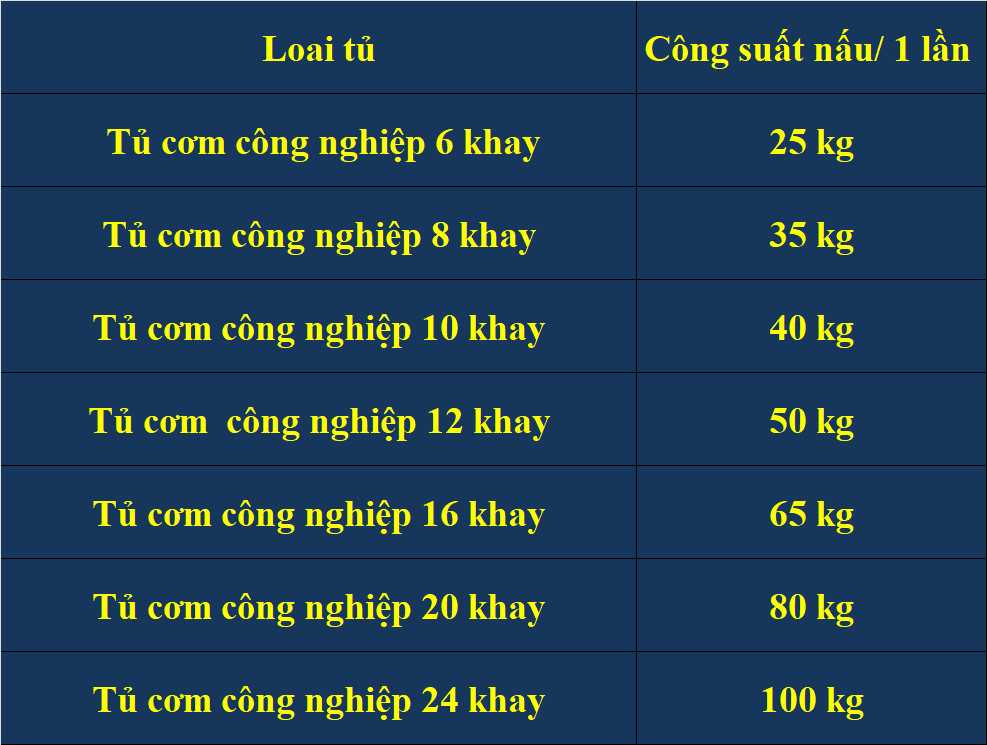 Phân chia theo số lượng khay( công suất nấu)